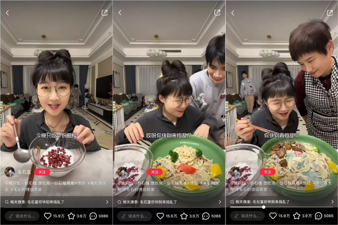 比如在TOP20博主中,@七颗猩猩 故事里王妈和赵管家的故事让人津津乐道,@刘大悦er 的主人公大悦妈和大悦爸的爱情也让人嗑生嗑死,而@宋黛cony 、@心动投递员Nana 两个账号的内容更是甜蜜感爆棚。因此,创作者在创作内容时,如果能够更加注重对女性情感和知识需求的满足,通过极具情绪的表达来触动其心灵,无疑能让自己的内容变得更加出彩。